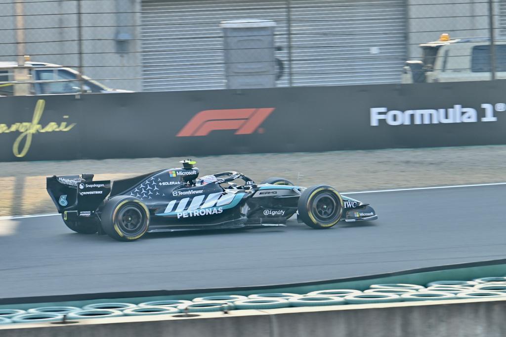 当日,22支车队在此进行练习赛和冲刺排位赛,下午结束的中国大奖赛冲刺排位赛中,拉塞尔轻松拿下杆位,领先0.6s+,第二、第三被安东内利和诺里斯分别拿下。